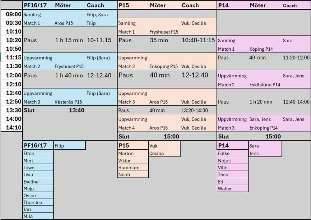 Om någon spelare behöver skjuts så försök i första hand lösa det mellan varandra, men självklart hjälper vi till vid behov. Hör av er på sms eller ring till oss i tid!